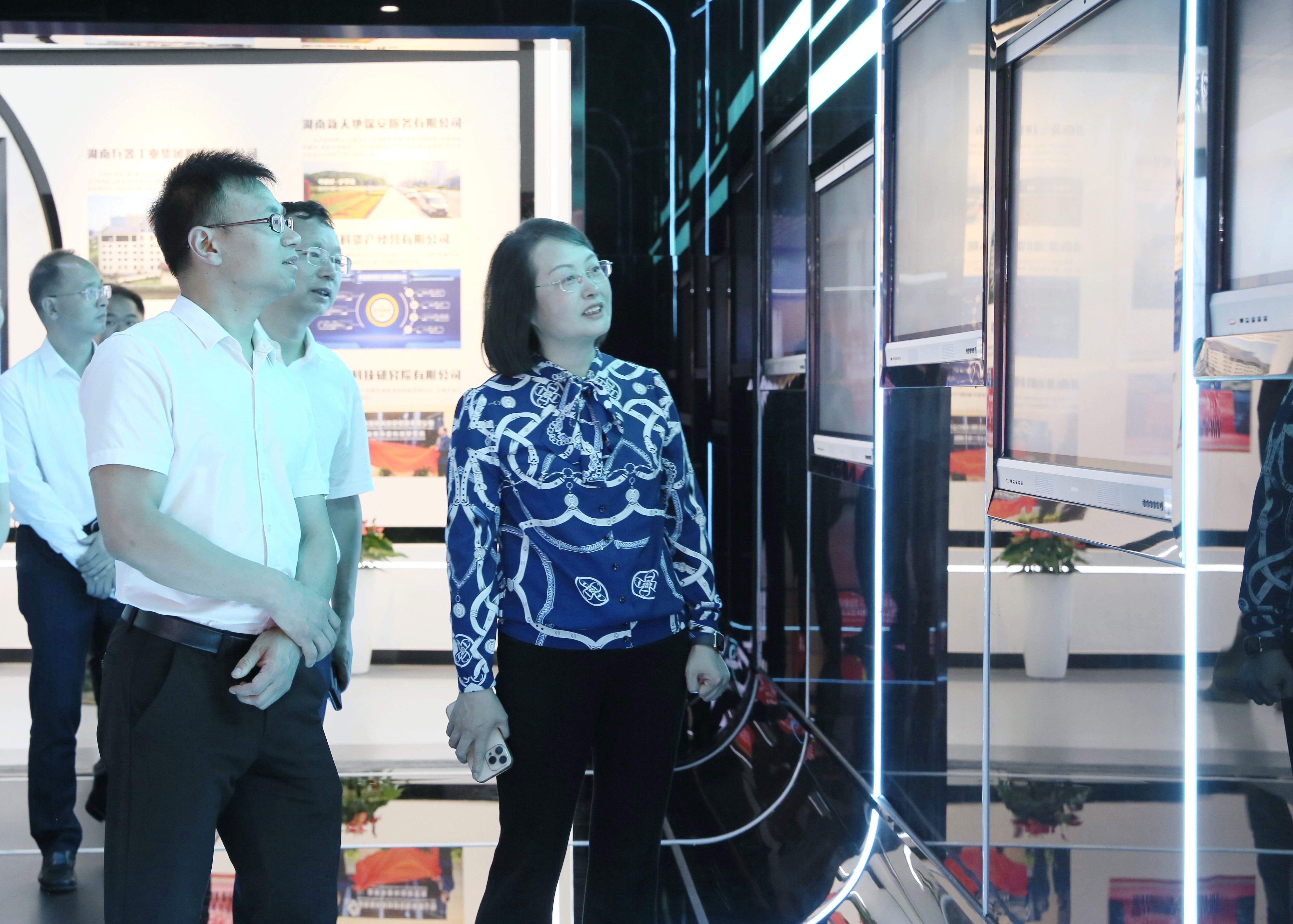 郑平一行观看了集团与浏阳烟花企业安全环保烟花产品燃放演示,参观了集团一楼产品展厅及二楼军民融合大数据安全中心。